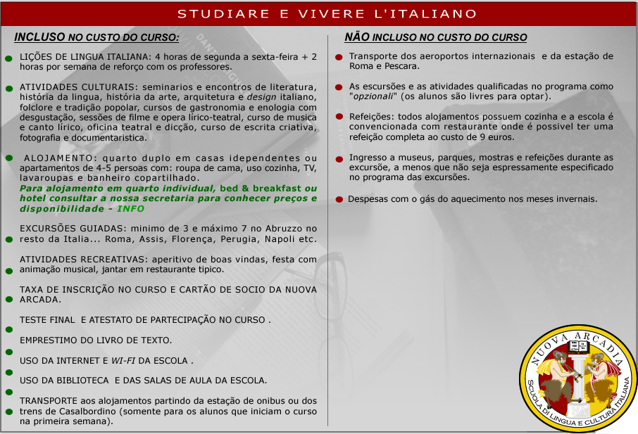 PREÇOS CURSO INTENSIVO DE LINGUA E CULTURA ITALIANA