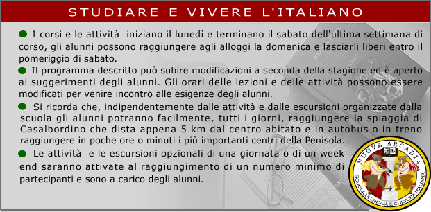 Tel. 0039 3294563090 / 00390873900559    e-mail info@scuolanuovarcadia.it